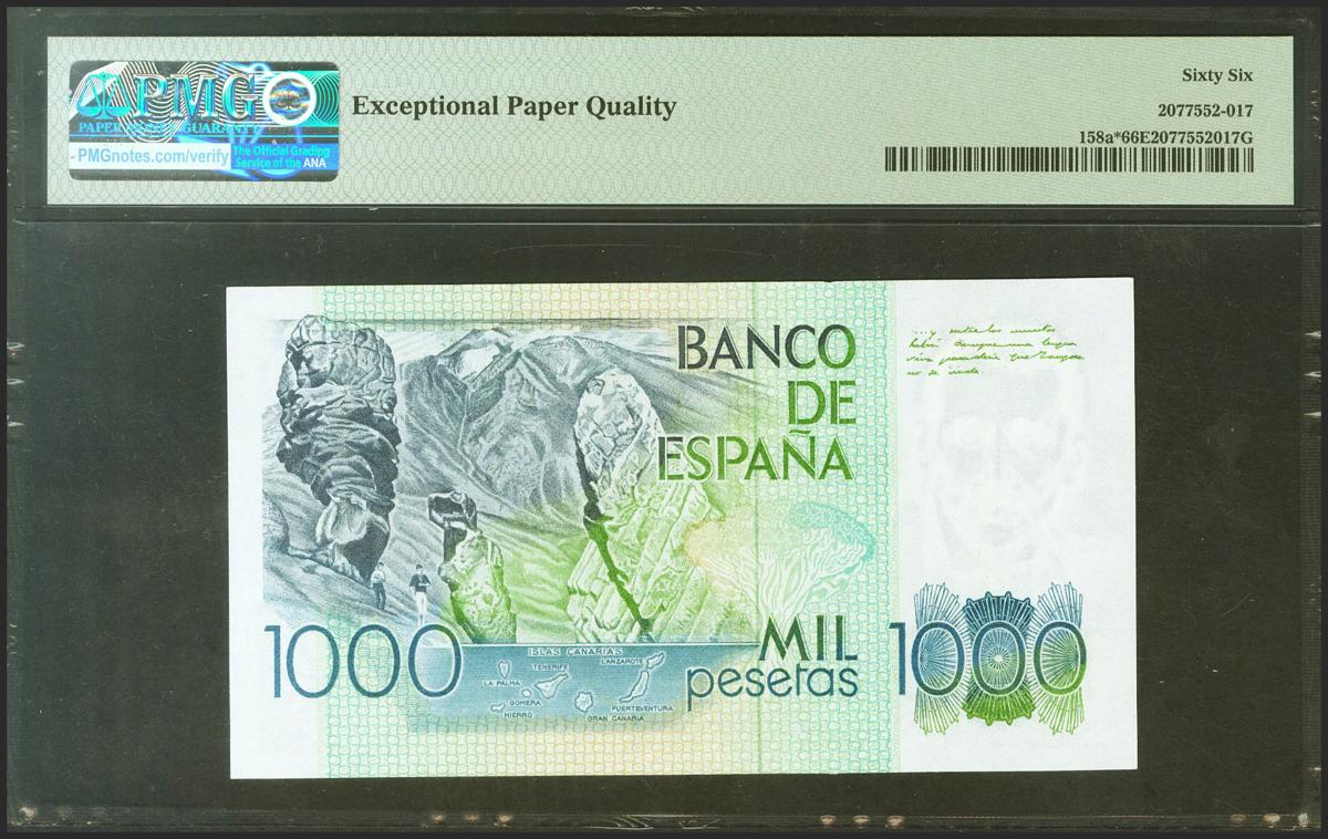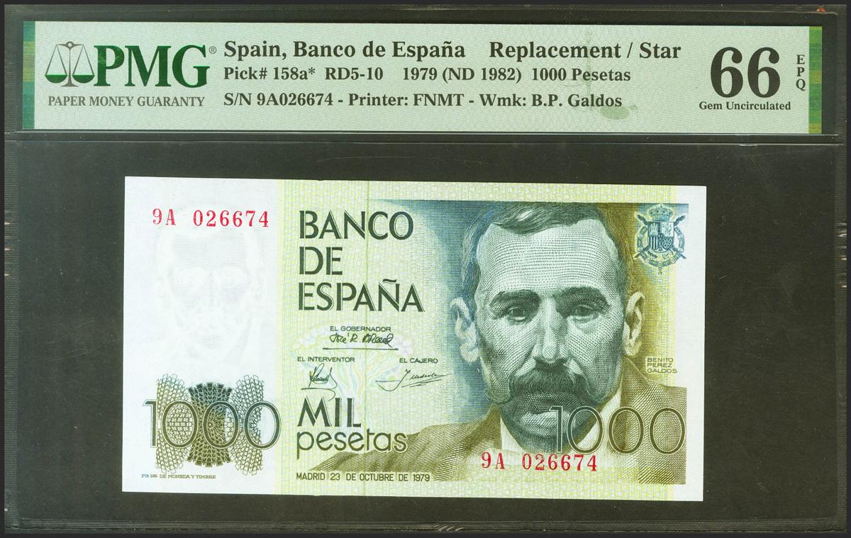 1000 Pesetas. 23 de Octubre de 1979. Serie especial 9A. (Edifil 2021: 477b, Pick: 158a*). Apresto original. SC. Encapsulado PMG66EPQ.