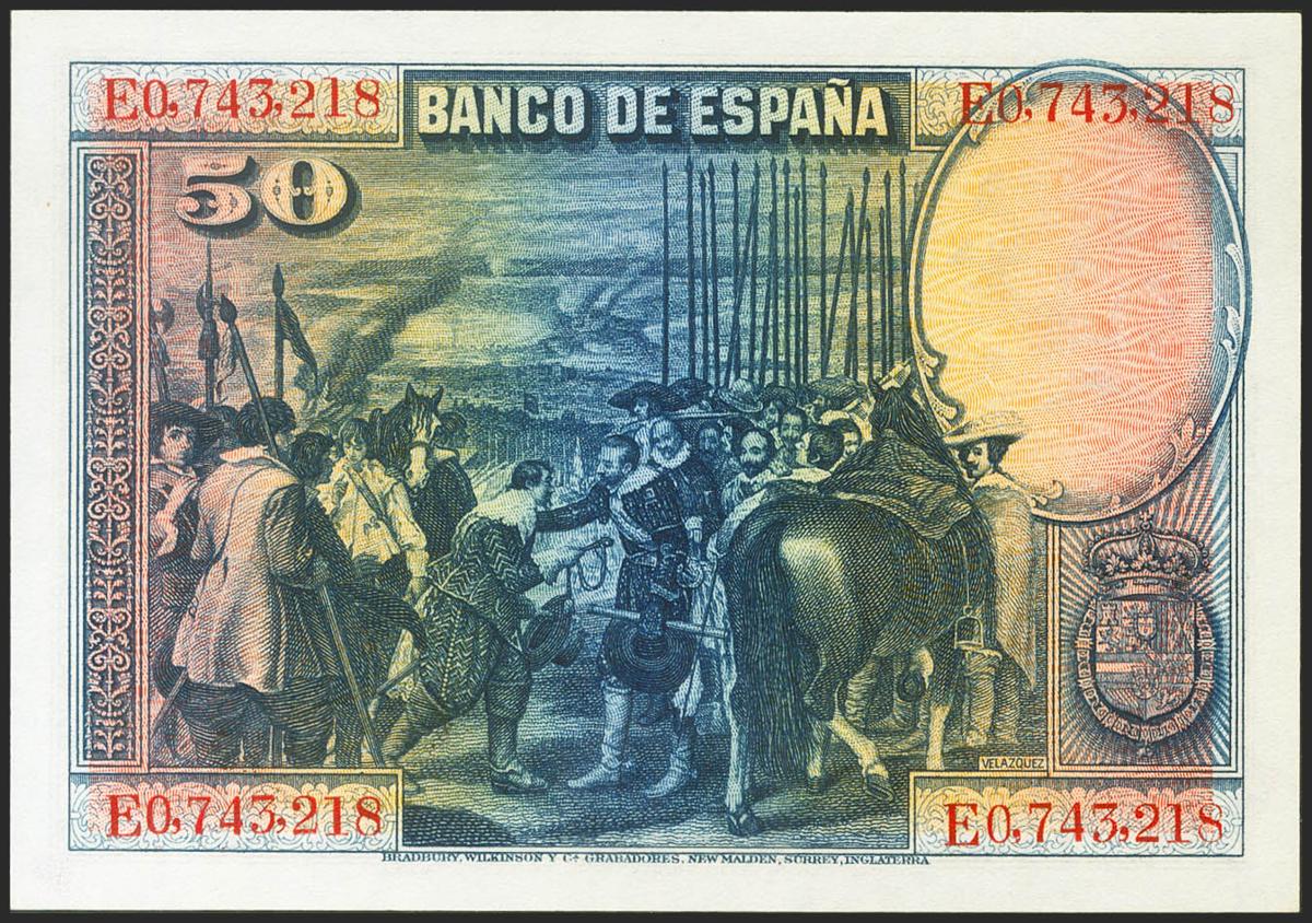 50 Pesetas. 15 de Agosto de 1928. Serie E. (Edifil 2021: 354). Apresto original. SC.
