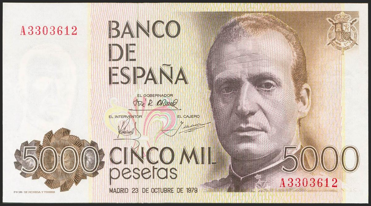 5000 Pesetas. 23 de Octubre de 1979. Serie A. (Edifil 2021: 478a). SC.