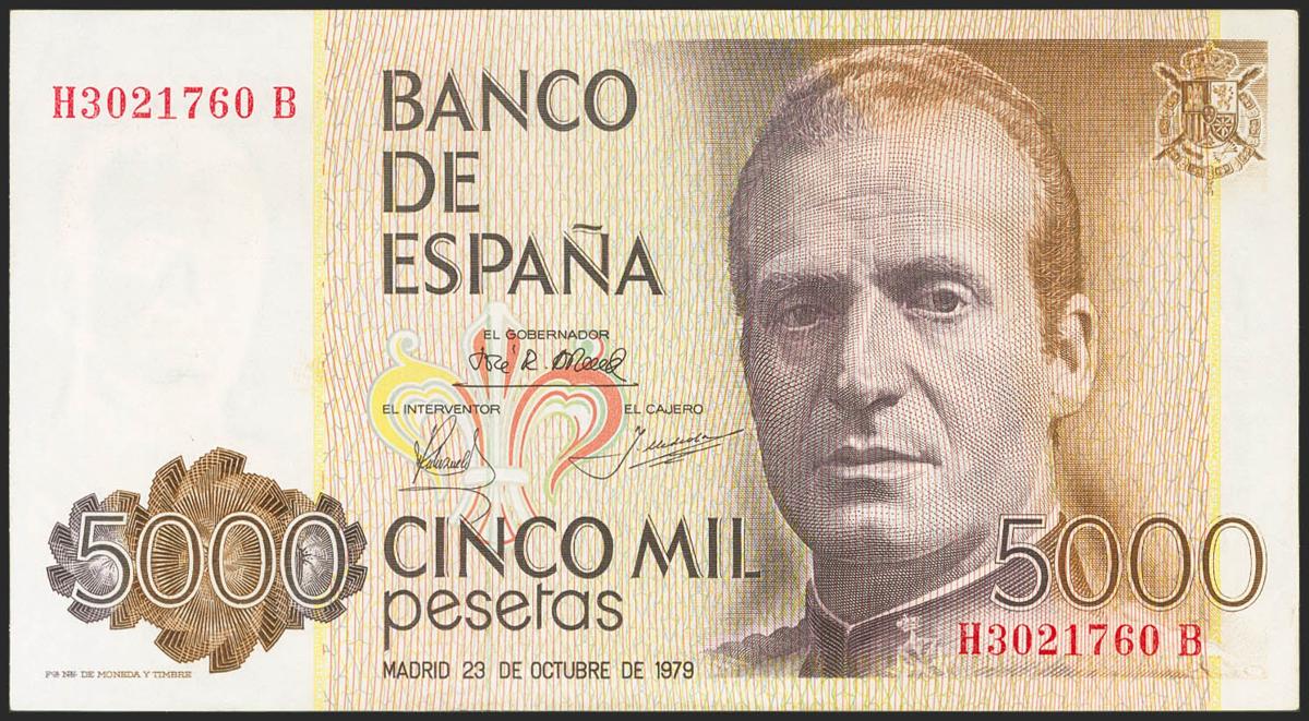 5000 Pesetas. 23 de Octubre de 1979. Serie H-B. (Edifil 2017: 478a). SC-.