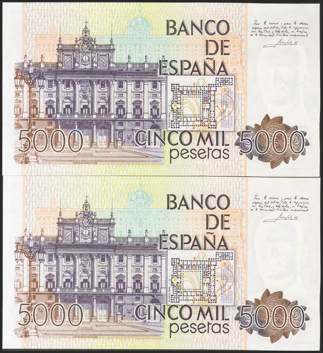 5000 Pesetas. 23 de Octubre de 1979. Pareja correlativa. Serie 3V. (Edifil 2021: 478a). SC.