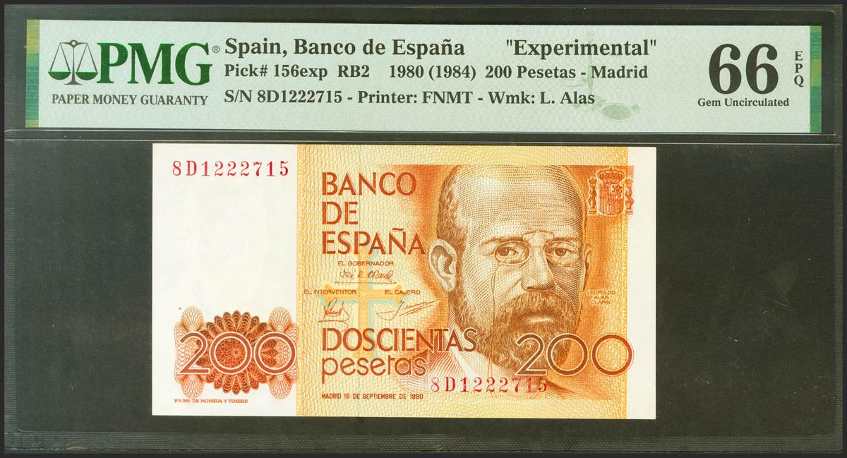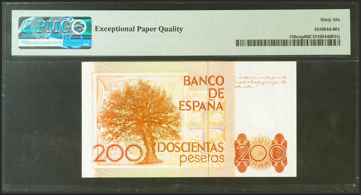 200 Pesetas. 16 de Septiembre de 1980. Serie especial 8D. (Edifil 2021: 480c, Pick: 156exp). Raro en esta excepcional calidad, apresto original. SC. Encapsulado PMG66EPQ.