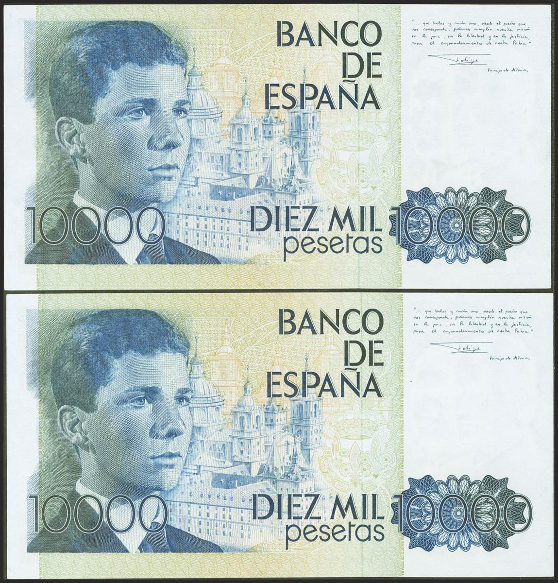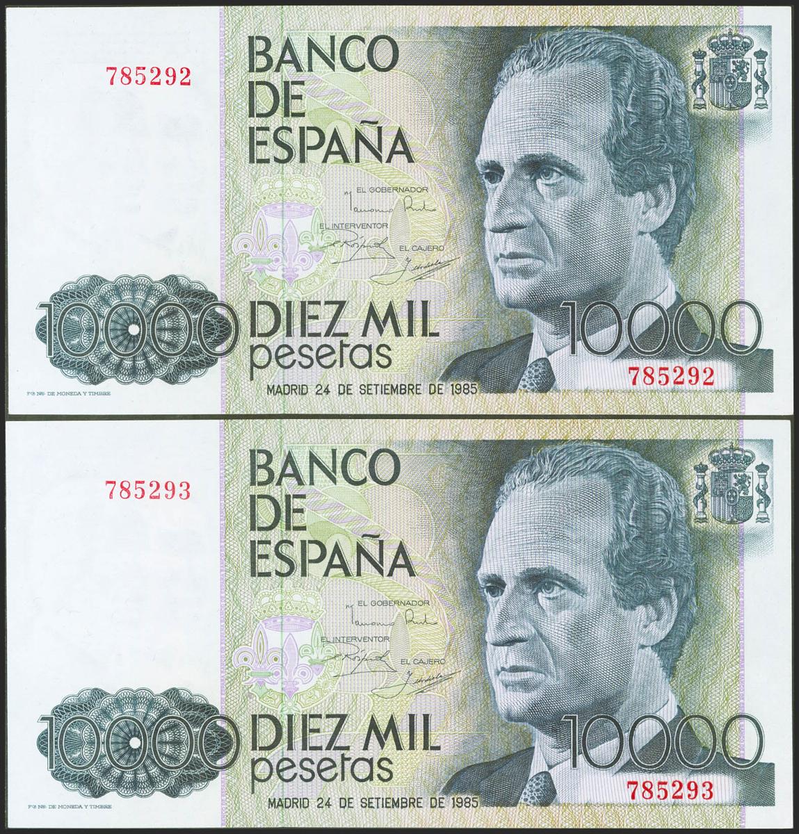 10000 Pesetas. 24 de Septiembre de 1985. Pareja correlativa. Sin serie. (Edifil 2021: 481). SC.