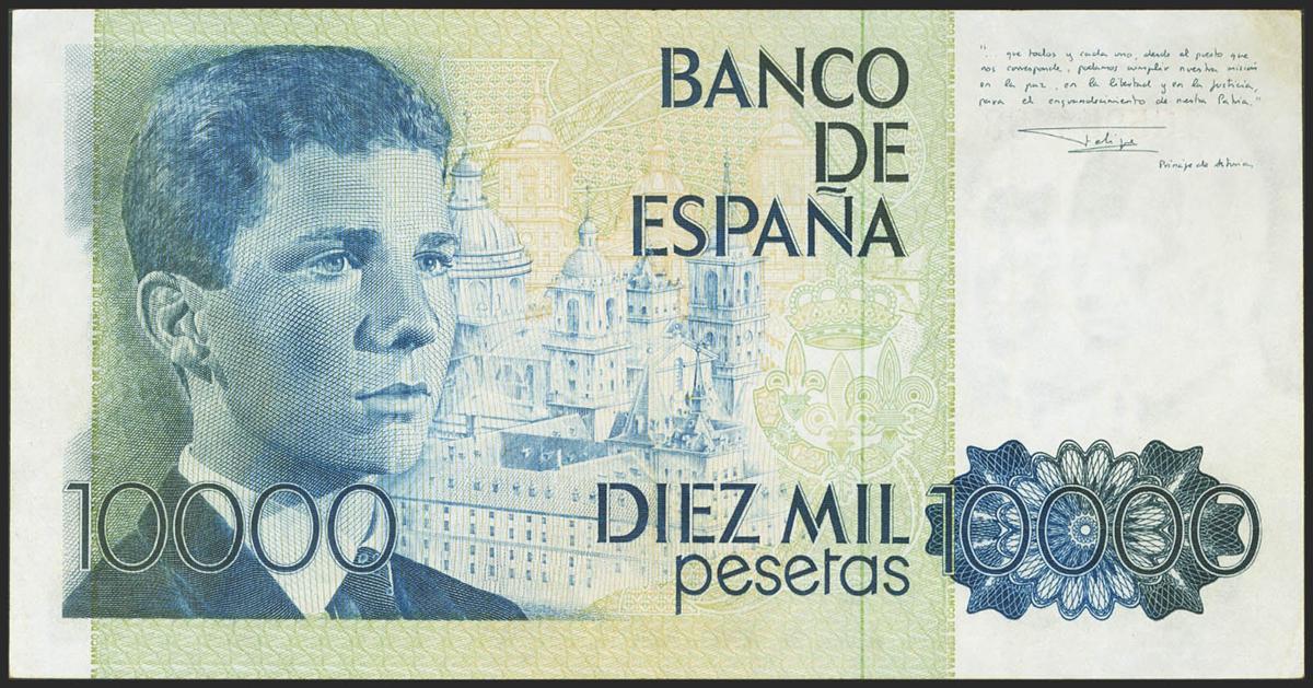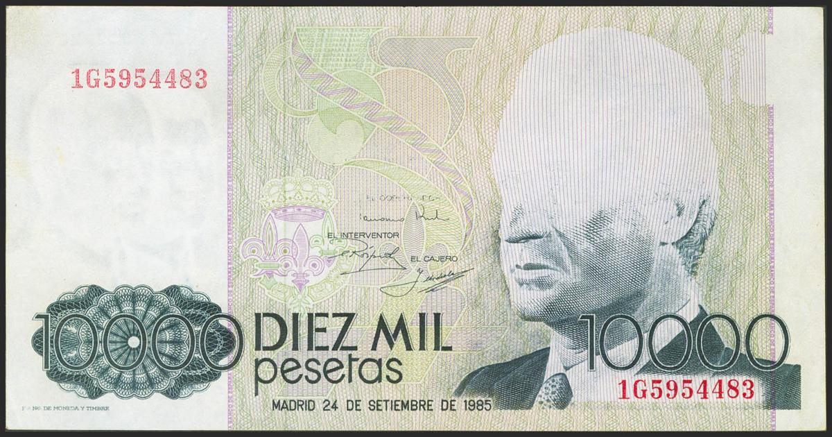 10000 Pesetas. 24 de Septiembre de 1985. Error de impresión en anverso. Serie 1G. (Edifil 2021: 481a). EBC+.