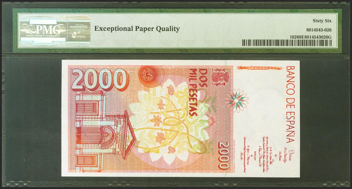 2000 Pesetas. 24 de Abril de 1992. Serie R y numeración capicua. (Edifil 2021: 482a, Pick: 162). SC. Encapsulado PMG66EPQ.