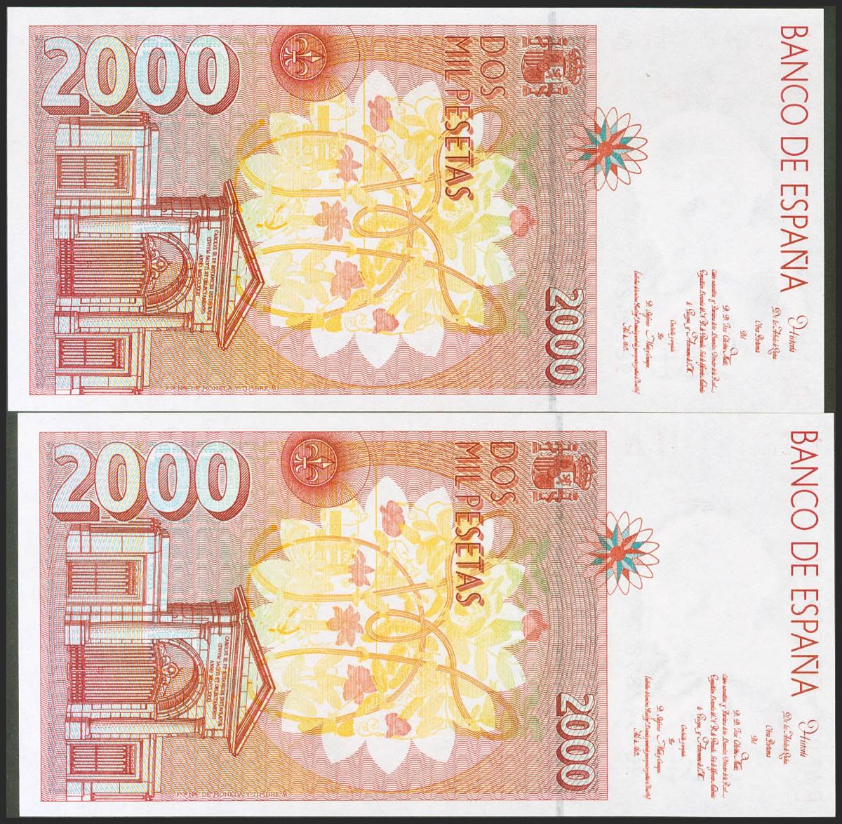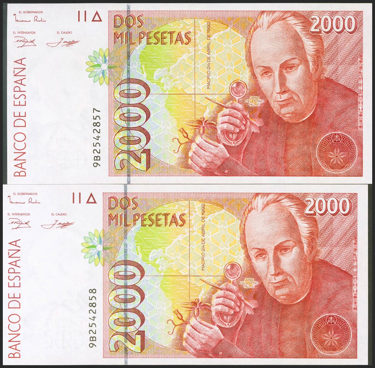 2000 Pesetas. 24 de Abril de 1992. Pareja correlativa. Serie especial 9B. (Edifil 2017: 482Ab). SC.