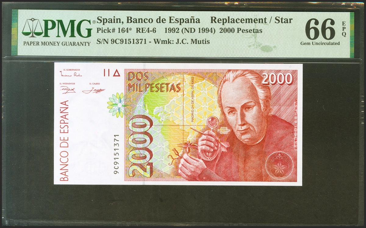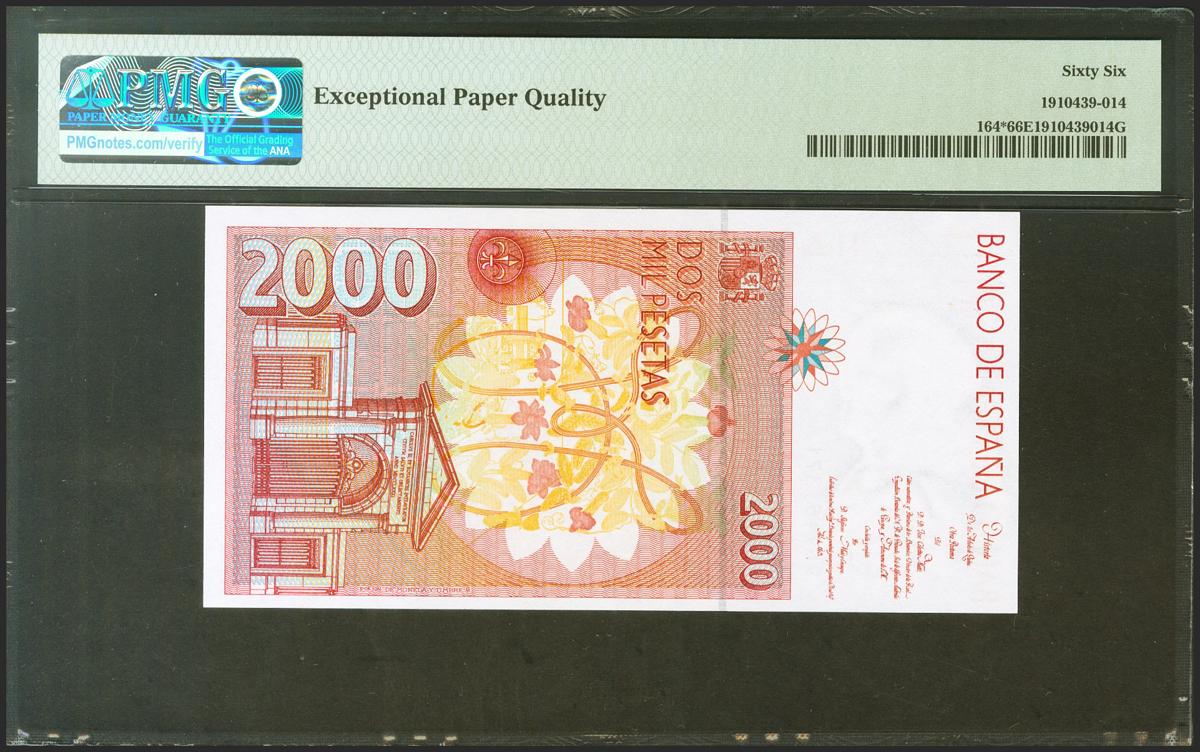 2000 Pesetas. 24 de Abril de 1992. Serie especial 9C. (Edifil 2021: 482Ab, Pick: 164*). Raro en esta excepcional calidad, apresto original. SC. Encapsulado PMG66EPQ.
