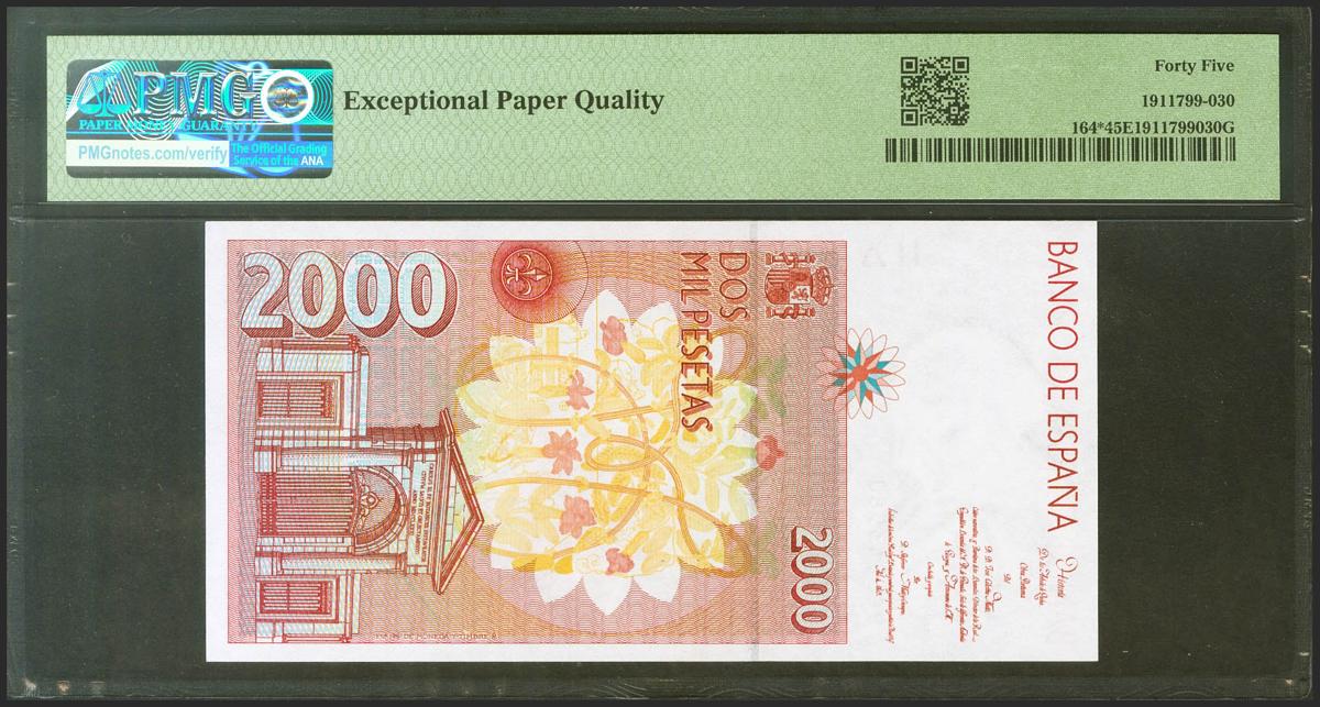 2000 Pesetas. 24 de Abril de 1992. Serie especial 9C. (Edifil 2021: 482Ab, Pick: 164*). Apresto original. EBC-. Encapsulado PMG45EPQ.