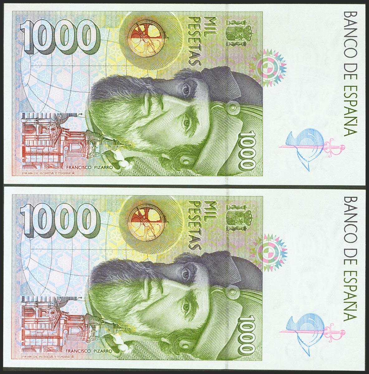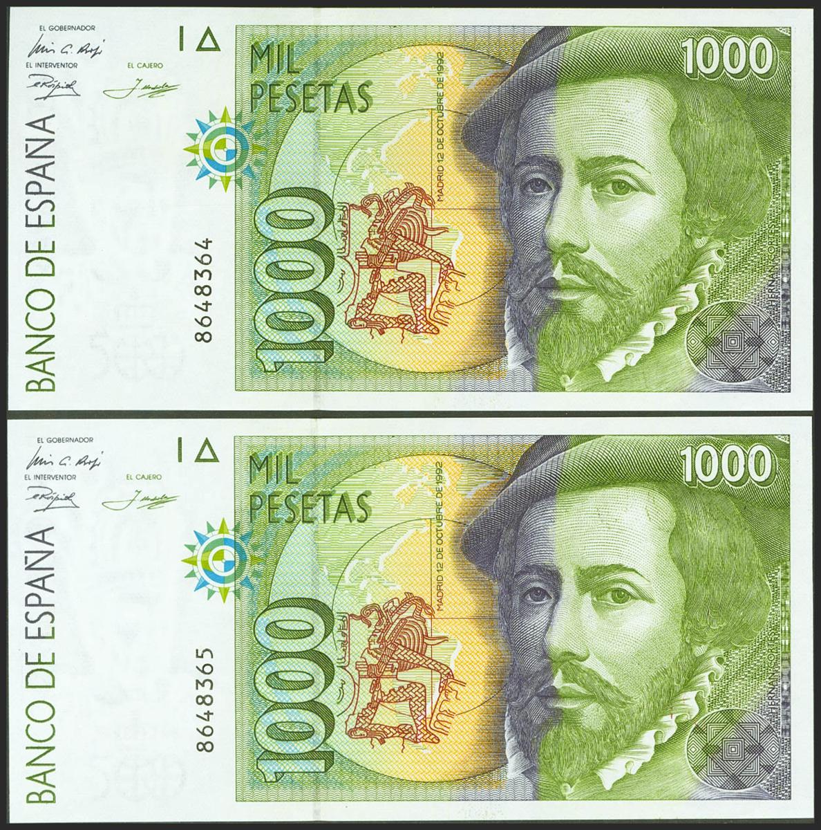 1000 Pesetas. 12 de Octubre de 1992. Pareja correlativa. Sin serie. (Edifil 2021: 483). SC.