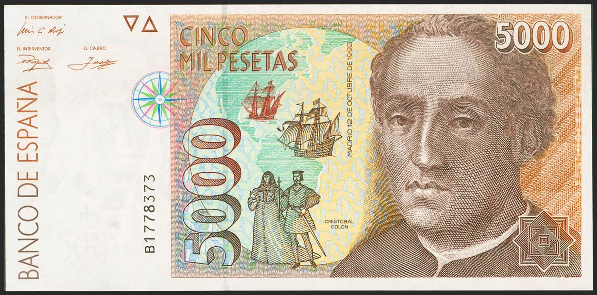 5000 Pesetas. 12 de Octubre de 1992. Serie B. (Edifil 2021: 484a). SC.