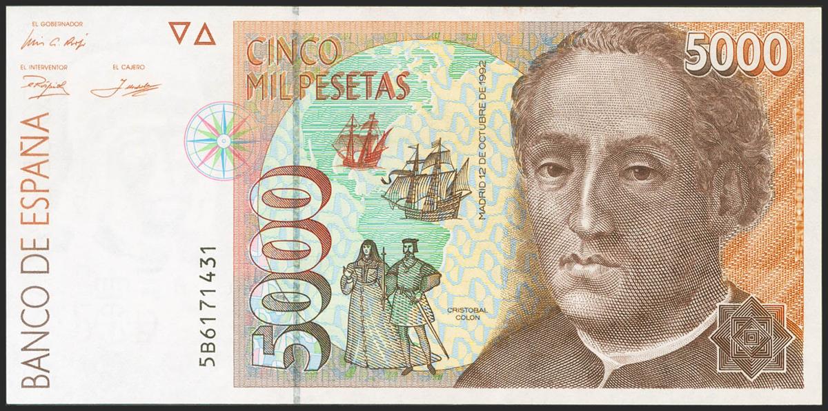 5000 Pesetas. 12 de Octubre de 1992. Serie 5B. (Edifil 2021: 484a). SC.