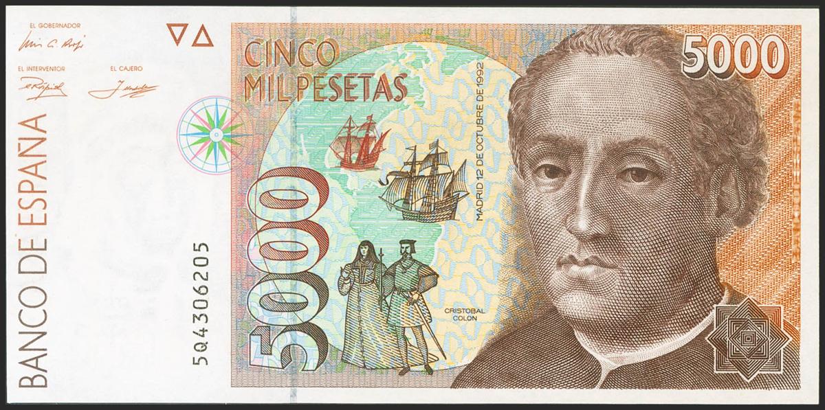 5000 Pesetas. 12 de Octubre de 1992. Serie 5Q. (Edifil 2021: 484a). SC.