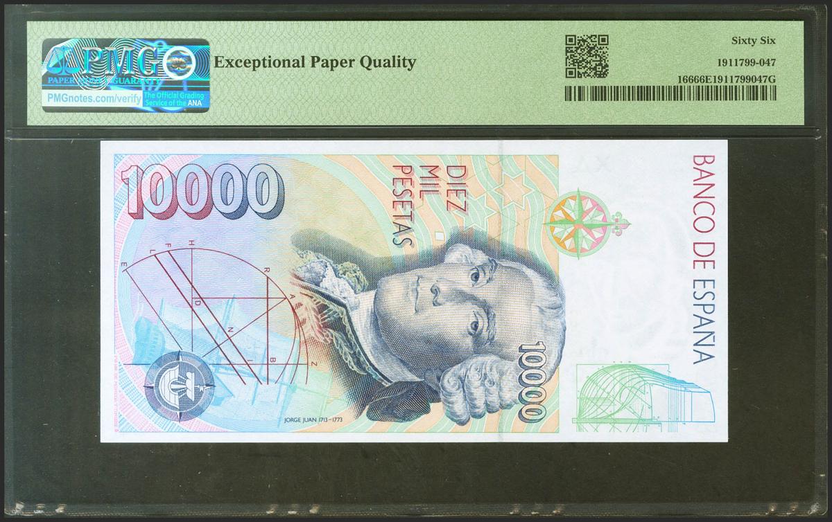 10000 Pesetas. 12 de Octubre de 1992. Sin serie. (Edifil 2021: 485, Pick: 166). Apresto original. SC. Encapsulado PMG66EPQ.