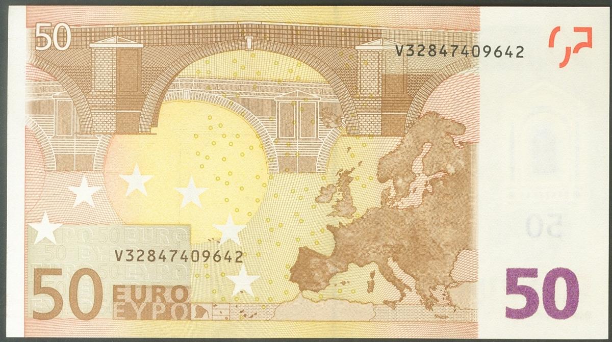 50 Euros. 1 de Enero de 2002. Firma Trichet. Serie V (España). (Edifil 2021: 489A). SC.
