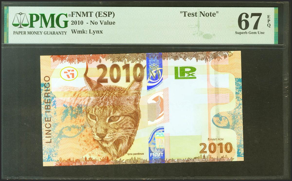 Prueba de billete de la FNMT, emitido en el 2010. No catalogado. SC. Encapsulado PMG67EPQ.