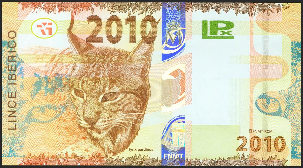 Prueba de billete del la F.N.M.T. emitida en el año 2010. No catalogado y raro. SC.