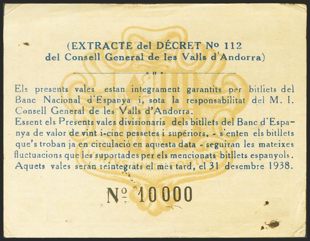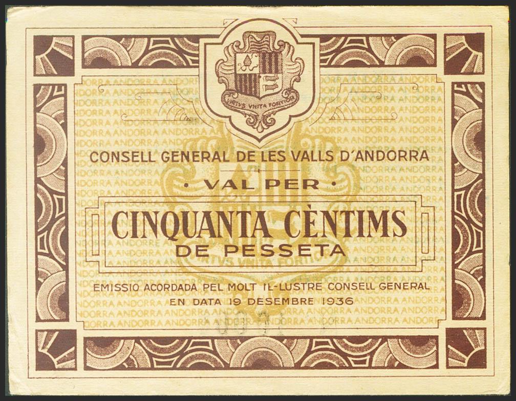 ANDORRA. 50 Céntimos. 19 de Diciembre de 1936. Sin serie y numeración muy curiosa 10000. (Edifil 2021: 1). EBC+.