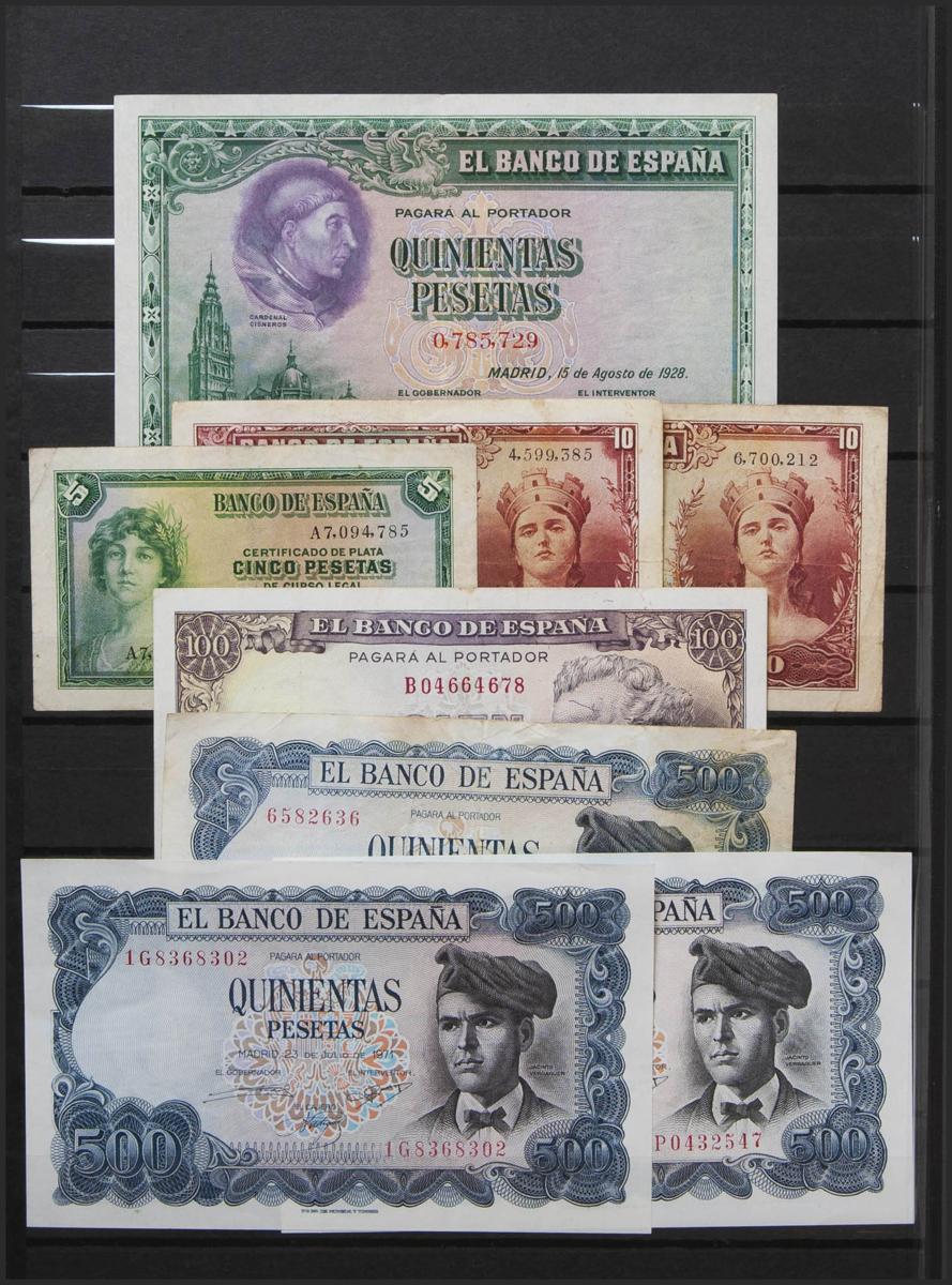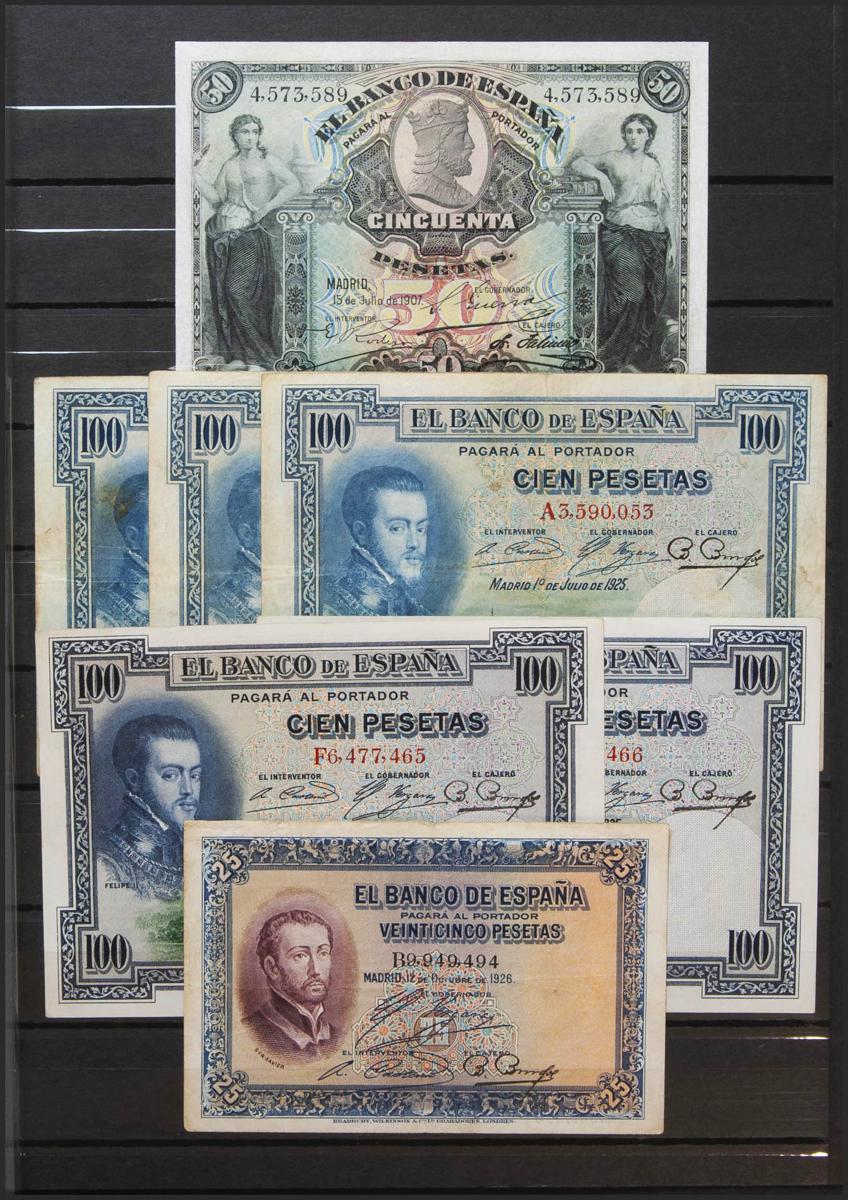 Conjunto de más de 10 billetes del Banco de España de diferentes emisiones y en diversas calidades, los de 100 Pesetas de Felipe II con sellos en seco. A EXAMINAR.