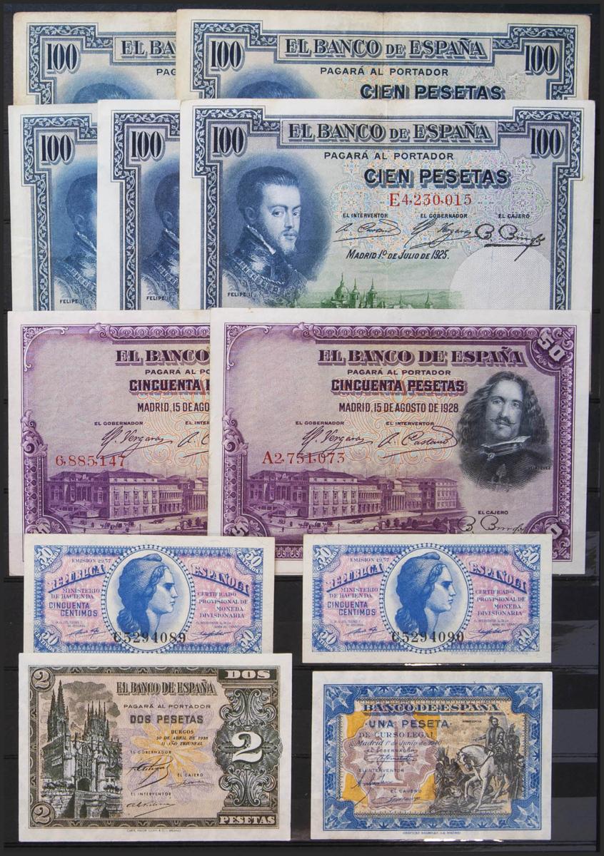 Interesante conjunto de más de 15 billetes del Banco de España en diversas calidades y diferentes emisiones. A EXAMINAR.