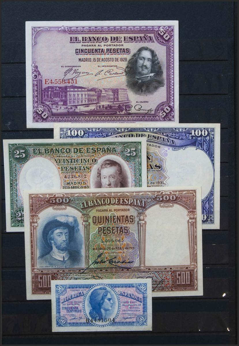 Interesante conjunto de más de 15 billetes del Banco de España de diferentes emisiones y en diversas calidades. A EXAMINAR.