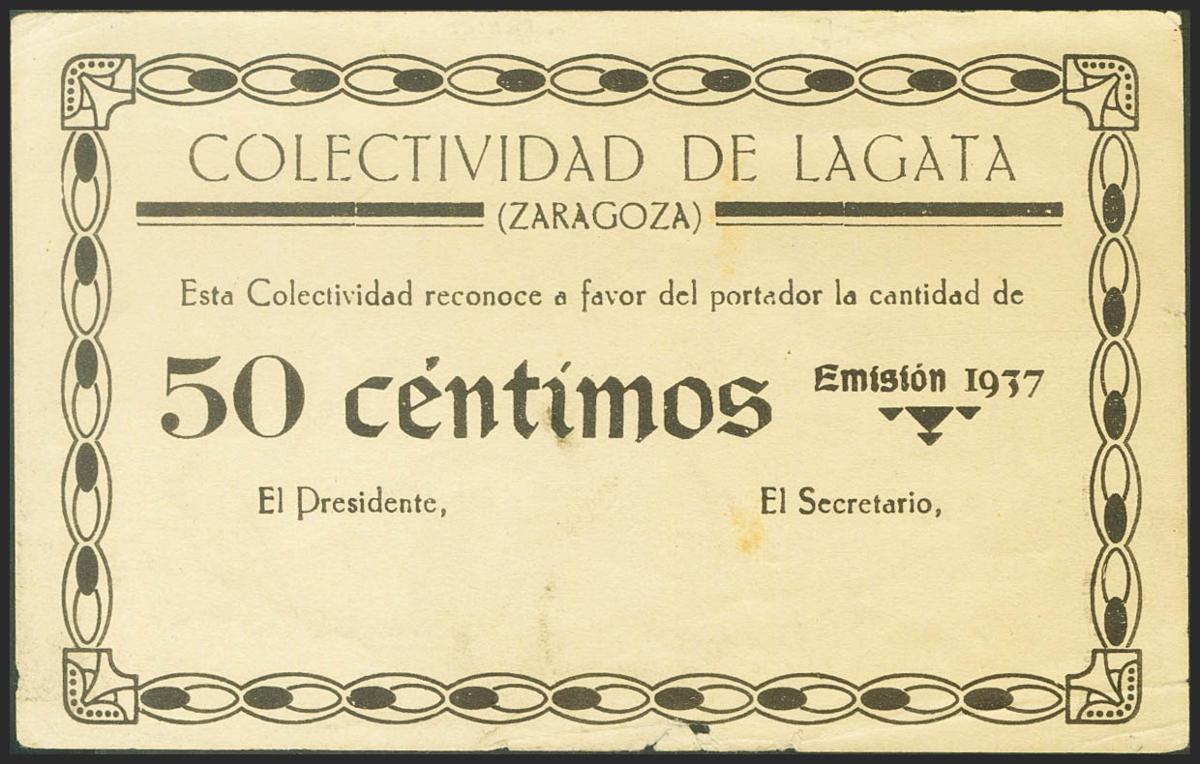LAGATA (ZARAGOZA). 50 Céntimos. (1937ca). (González: 3089). Inusual. MBC-.