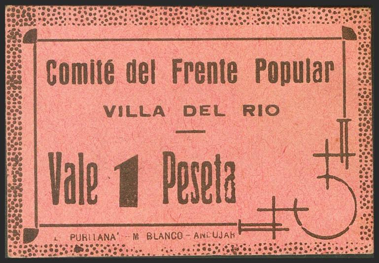 VILLA DEL RIO (CORDOBA). 1 Peseta. (1937ca). (González: 5496). SC.