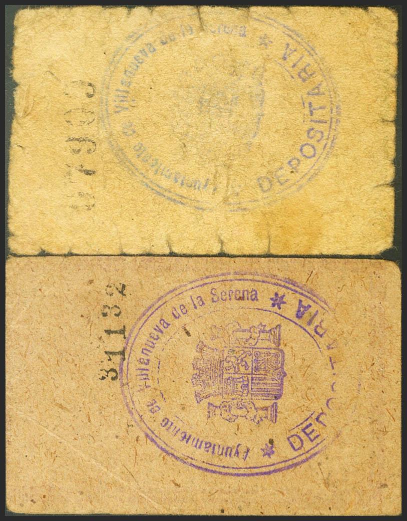 VILLANUEVA DE LA SERENA (BADAJOZ). 25 Céntimos y 1 Peseta. 2 de Diciembre de 1937. (González: 5651, 5653). MBC/RC.
