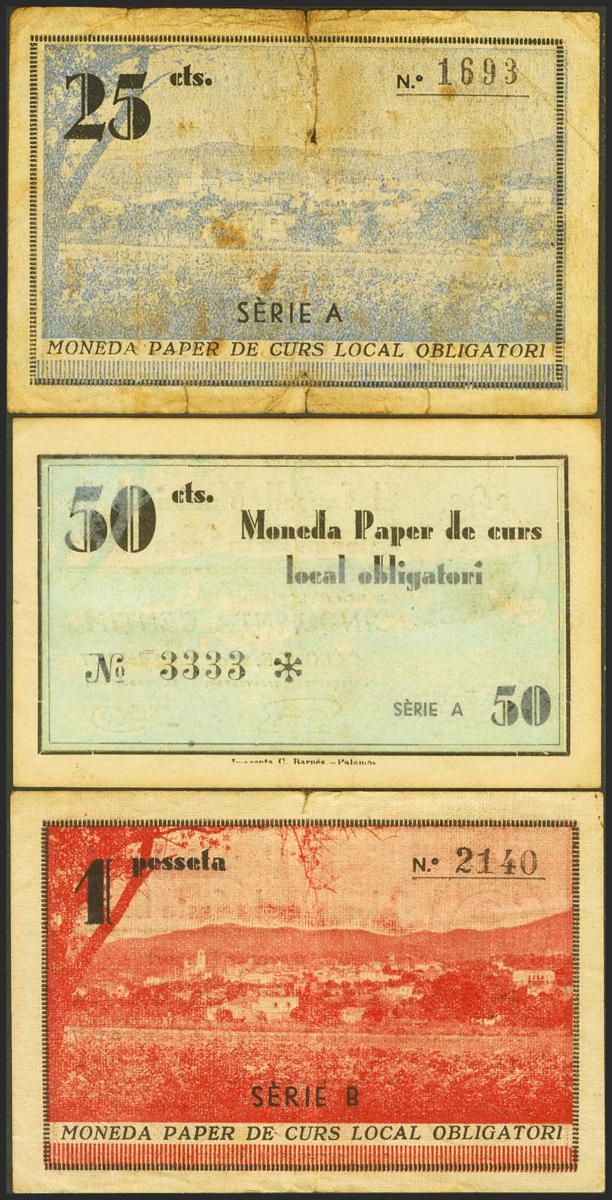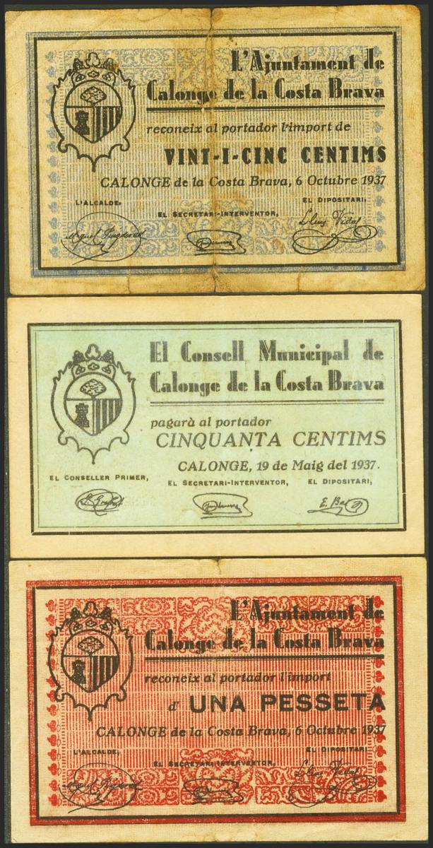 CALONGE DE LA COSTA BRAVA (GERONA). 25 Céntimos, 50 Céntimos y 1 Peseta. (1937ca). (González: 7307/09). EBC-/BC-.