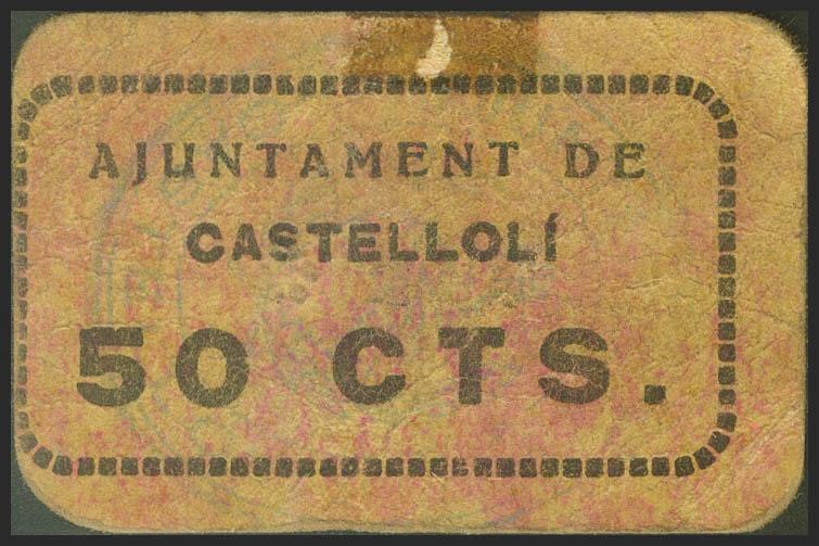CASTELLOLI (BARCELONA). 50 Céntimos. (1937ca). (González: 7501). Muy raro. MBC-.