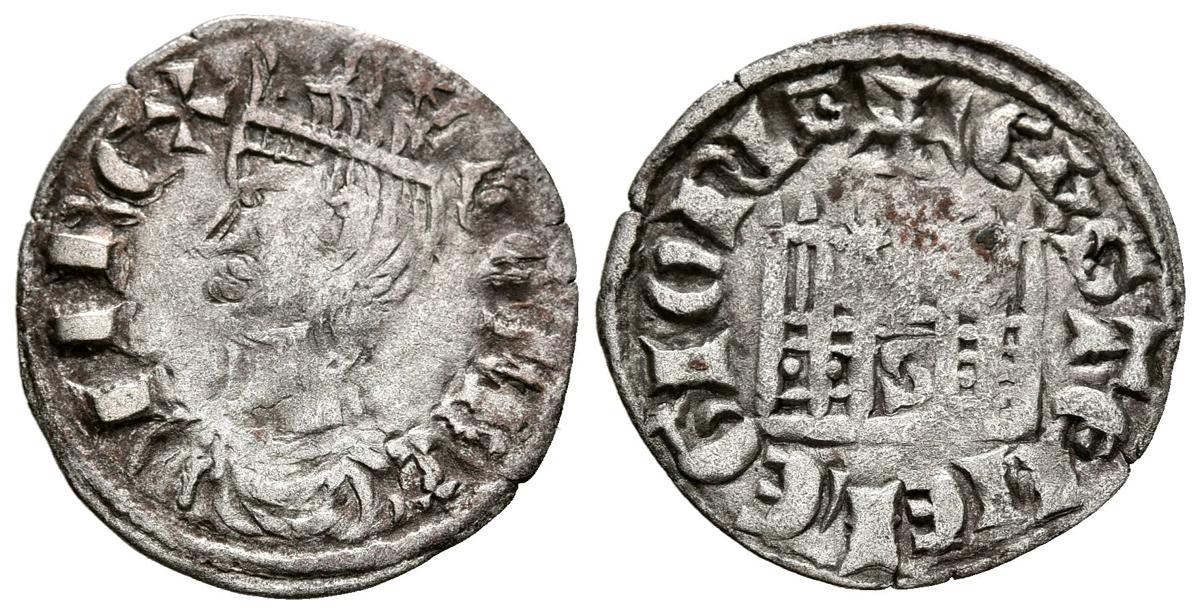 SANCHO IV (1284-1295). Cornado (Ve. 0,67g/18mm). Sevilla. (FAB-301.2). Anv: busto coronado a izquierda, alrededor leyenda: SANCH REX. Rev: castillo con cruz sobre vástago central, dos estrellas y marca de ceca en puerta, alrededor leyenda: CASTELLE E LEGIONIS. MBC.