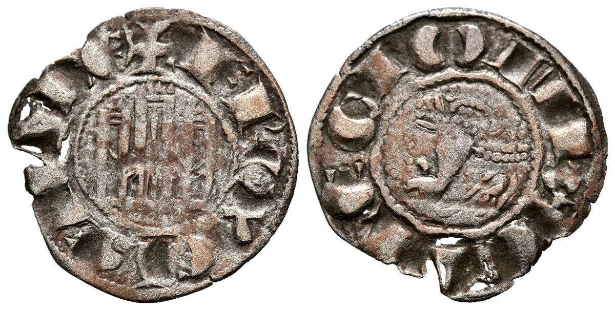 FERNANDO IV (1295-1312). Pepión. (Ae. 0,57g/19mm). Sin marca de ceca (FAB-318). Anv: Castillo dentro de gráfila circular, alrededor leyenda: F REX CASTELLE. Rev: León rampante a izquierda dentro de gráfila, alrededor leyenda: ET LEGIONIS. MBC-
