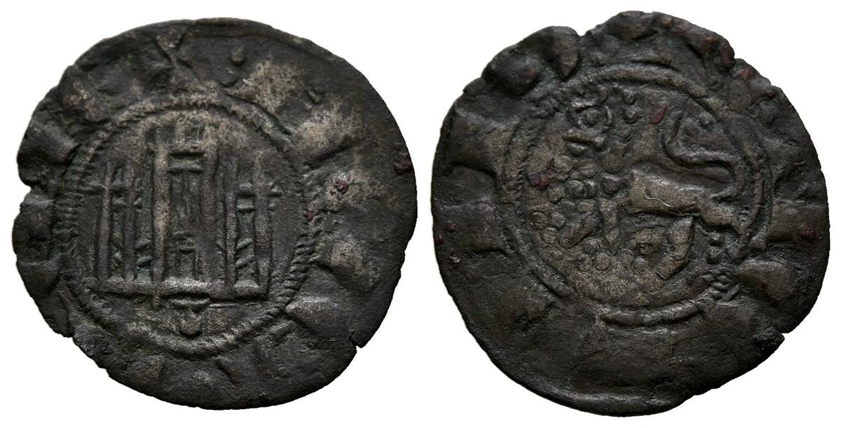 FERNANDO IV (1295-1312). Pepión. (Ve. 0,78g/19mm). Coruña. (FAB-321). Anv: Castillo, debajo venera, todo dentro de gráfila circular, alrededor leyenda: F REX CASTELLE. Rev: León a izquierda dentro de gráfila circular: ET LEGIONIS. MBC.
