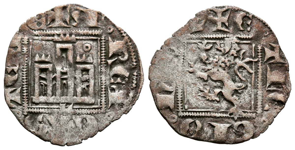 ALFONSO XI (1312-1350). Noven. (Ve. 0,66g/18mm). León. (FAB-357.2). Anv: Castillo con punto sobre torre derecha, debajo L, todo dentro de gráfila cuadrada, alrededor leyenda: ALF REX CASTELLE. Rev: León rampante a izquierda en gráfila cuadrada,alrededor leyenda: ET LEGIONIS. MBC.