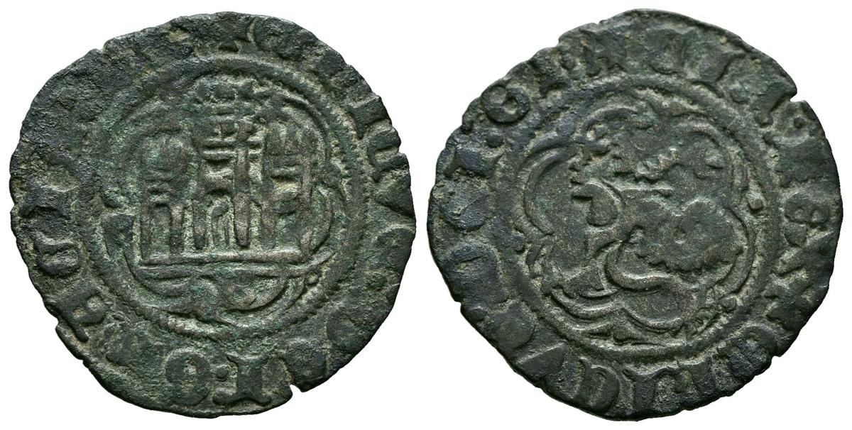 ENRIQUE III (1390-1406). Blanca. (Ae. 1,77g/22mm). Burgos. (FAB-597). Anv: Castillo, debajo B, todo dentro de gráfila lobular, alrededor leyenda: ENRICVS DEI GRACIA. Rev: León rampante a izquierda dentro de gráfila lobular, alrededor leyenda: ENRICVS DEI GRACIA. MBC.