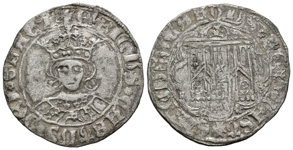 ENRIQUE IV (1454-1474). Cuartillo. (Ve. 2,99g/26mm). Toledo. (FAB-757). Anv: Busto coronado del rey de frente, dentro de gráfila circular, alrededor leyenda: ENRICVS QVARTVS DEI GRACIA REX. Rev: Castillo con T como marca de ceca debajo, todo dentro de grafila lobular, alrededor leyenda: ENRICVS REX CASTELLE E LE. MBC+. Vellón rico.