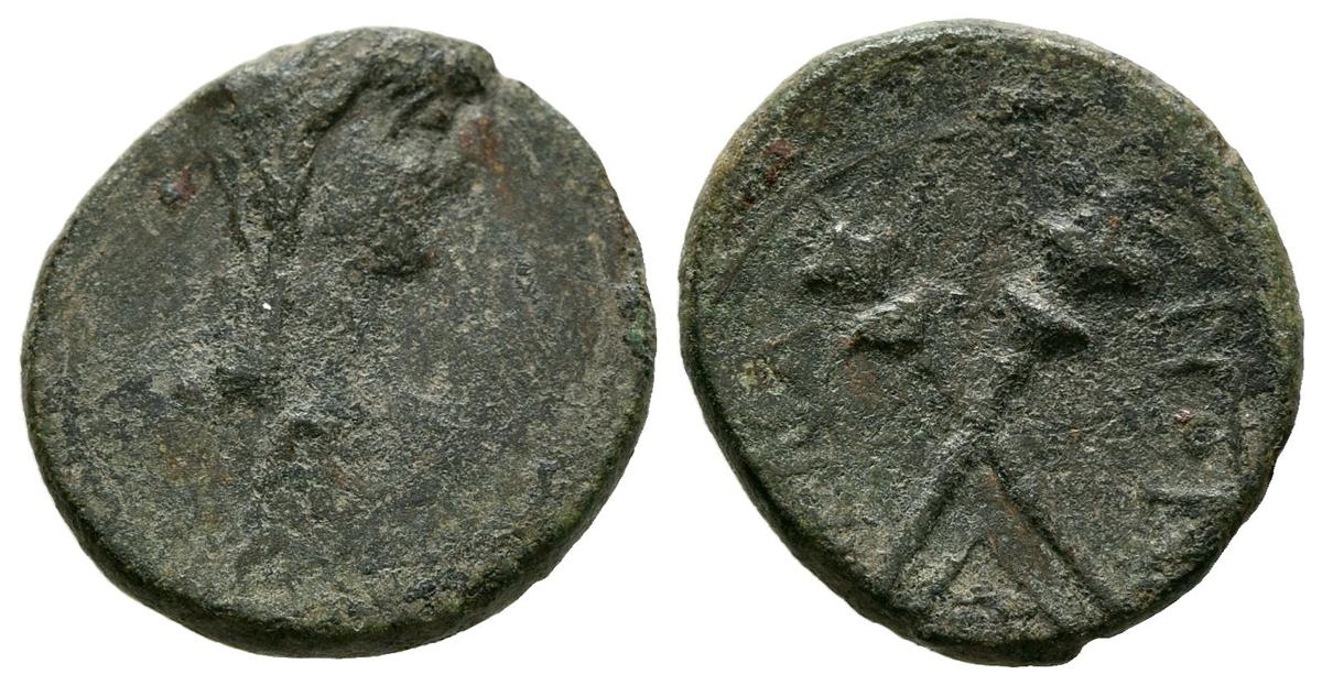 SICILIA, Siracusa. Ae17. (Ae. 2,92g/17mm). 212 a.C. (SNG ANS 1095). Anv: Cabeza velada de Demeter a derecha. Rev: Dos antorchas cruzadas, alrededor leyenda griega. MBC-.