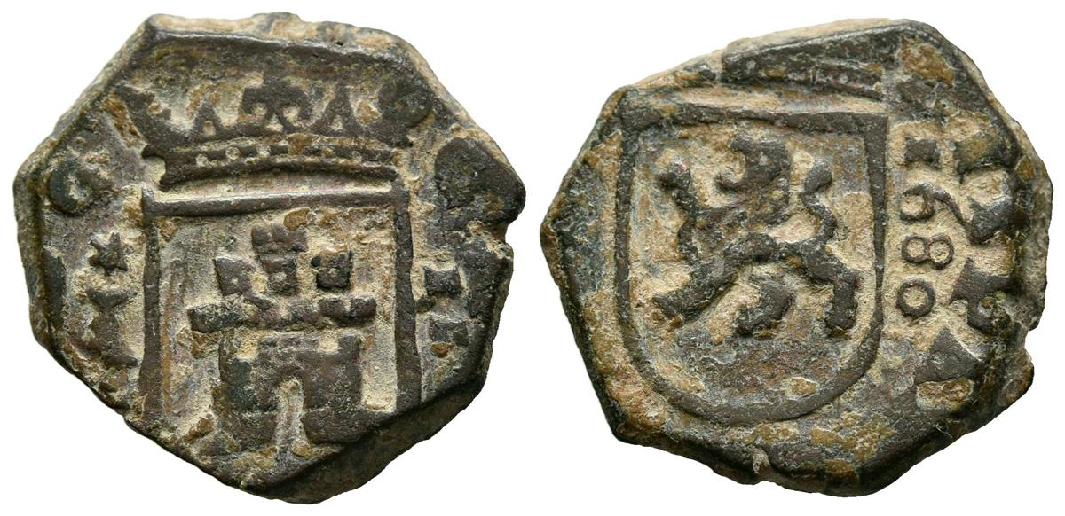 CARLOS II (1665-1700). 2 Maravedís. (Ae.5,41g/20mm). 1680. Cuenca (Cal-2019-60). MBC-.