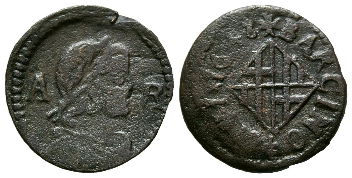 GUERRA DELS SEGADORS (1640-1652). Ardite. (Ae. 1,41g/17mm). 1648. Barcelona. (Cal-2019-34). MBC-.