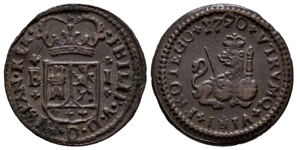 FELIPE V (1700-1746). 1 Maravedi. (Ae. 2,36g/19mm). 1720. Barcelona. (Cal-2019-45). MBC+.