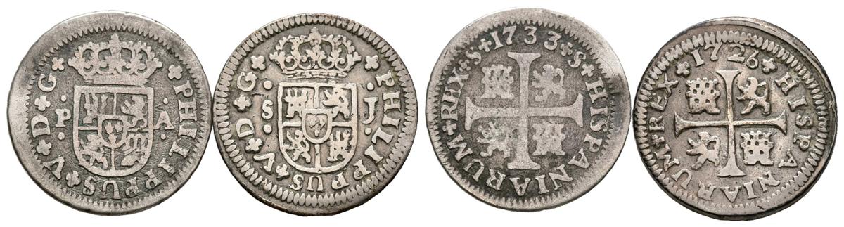FELIPE V (1700-1746). Interesante pareja de 1/2 reales acuñados en Sevilla en 1726 y 1733. Diferentes estados de conservación. A EXAMINAR.
