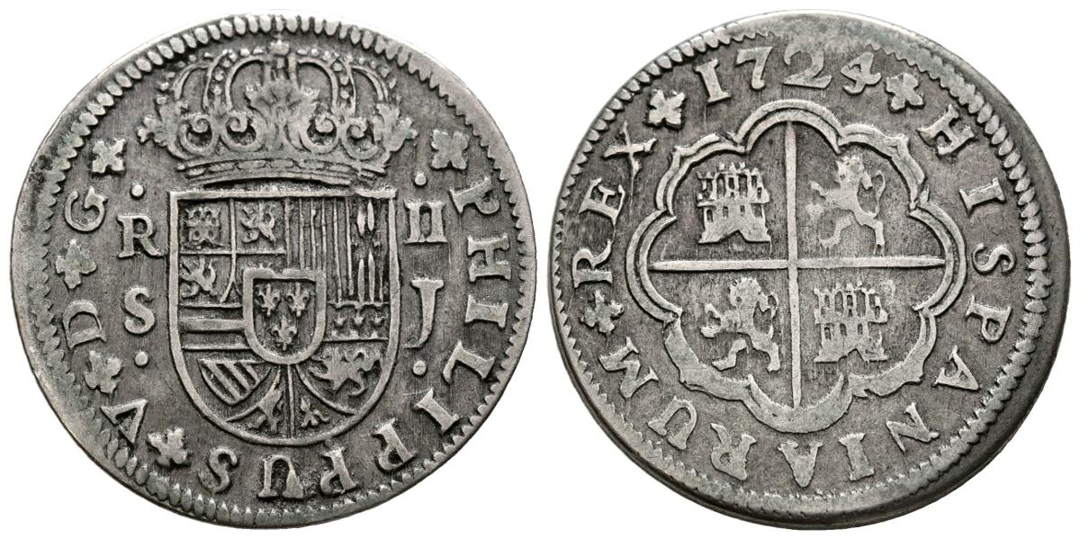 FELIPE V (1700-1749). 2 Reales (Ar. 5,61g /26mm). 1724. Sevilla J. (Cal-2019-982). MBC/MBC-.