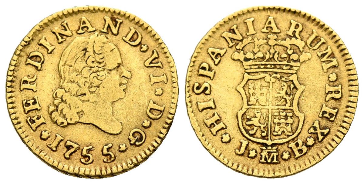 FERNANDO VI (1746-1759). 1/2 Escudo. (Au 1,61g /15mm). 1755. Madrid JB. (Cal-2019-558). MBC-