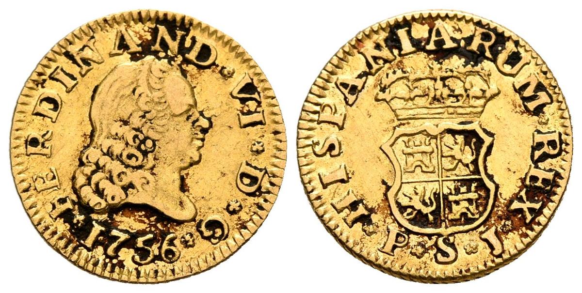 FERNANDO VI (1746-1759). 1/2 Escudo (Au. 1,74g/15mm). 1756. Sevilla PJ. (Cal-2019-580).BC+.