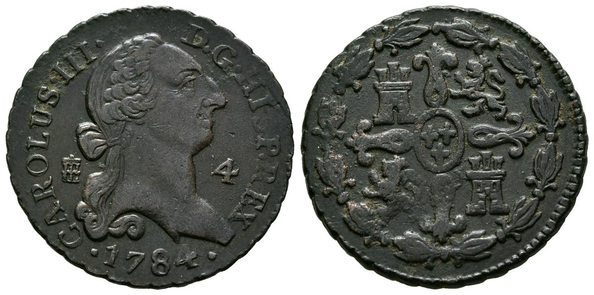 CARLOS III (1759-1788). 4 Maravedís. (Ae. 5,23g /25mm). 1784. Segovia. (Cal-2019-63). EBC/EBC-. Escasa así.