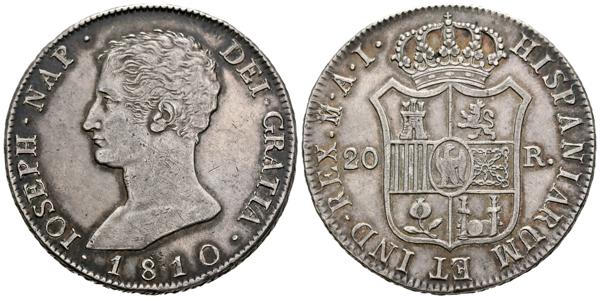 JOSE NAPOLEON (1808-1813). 20 Reales. (Ar. 27,20g/40mm). 1810. Madrid AI. (Cal-2019-37). Aguila grande. MBC+. Pátina.