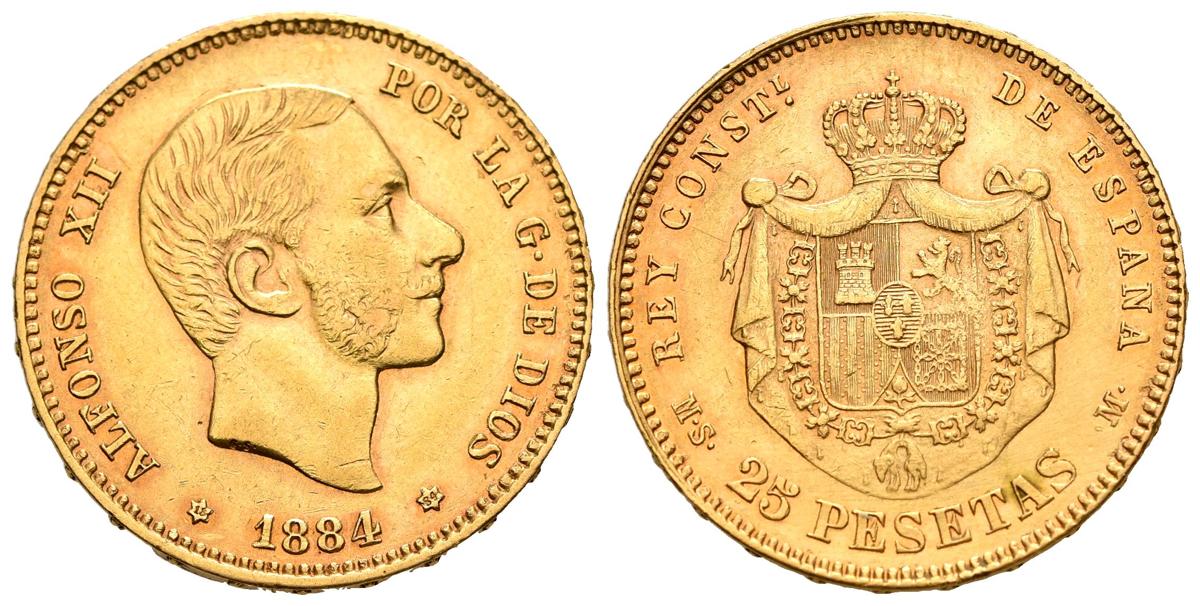 ALFONSO XII (1874-1885). 25 Pesetas. (Au. 8,06g/24mm). 1884 *18-84. Madrid MSM. (Cal-2019-89). MBC+.