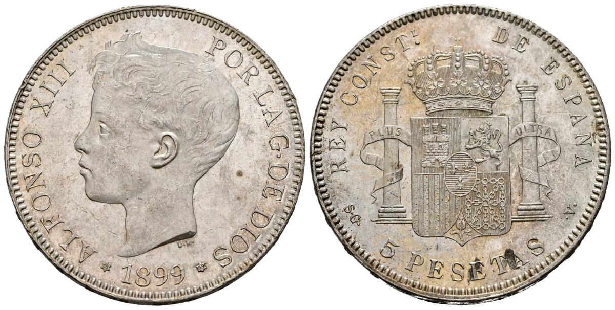 ALFONSO XIII (1885-1931). 5 Pesetas. (Ar. 24,82g/37mm). 1899 *18-99. Madrid SGV. (Cal-2019-110). SC-.