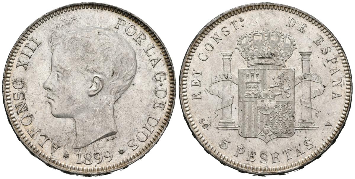 ALFONSO XIII (1885-1931). 5 Pesetas. (Ar. 25,13g/37mm). 1899 *18-99. Madrid SGV. (Cal-2019-110). EBC.