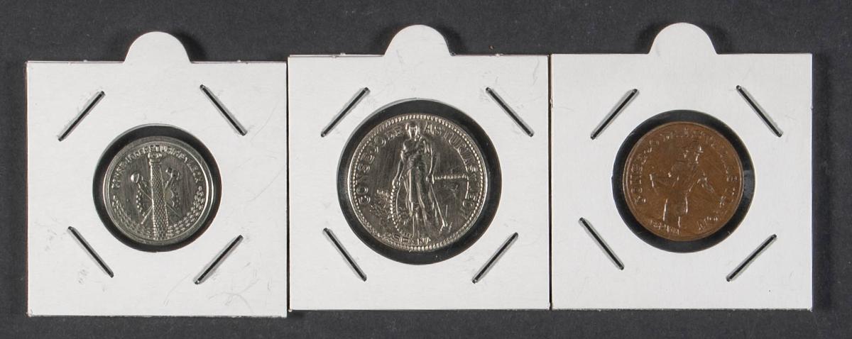 CONSEJO DE ASTURIAS Y LEÓN. Serie completa compuesta por los tres valores: 50 Céntimos, 1 y 2 Pesetas. EBC+. Magníficas piezas.
