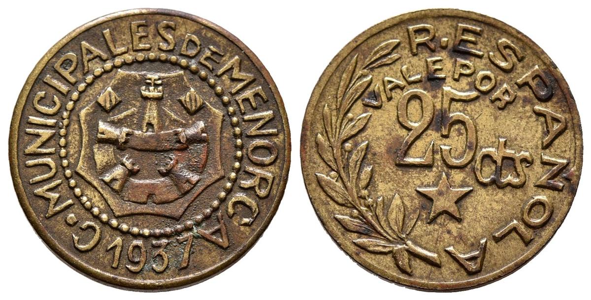 MENORCA. 25 Céntimos. (CuNi. 2,29g/17mm). 1937. (Cal-2019-22). MBC+.